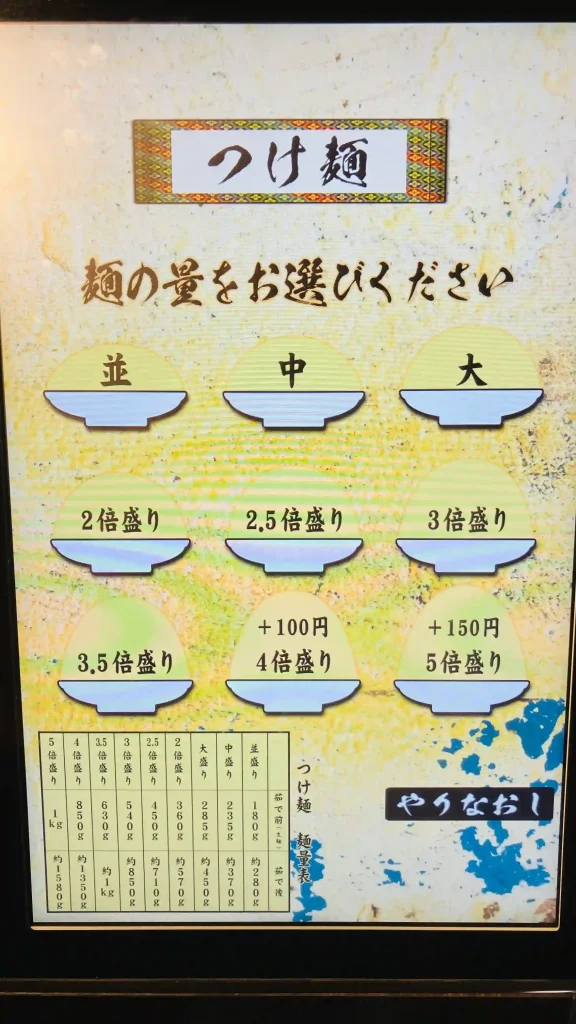 武蔵のつけ麺は、3.5倍盛りまでは無料なのも健在です。