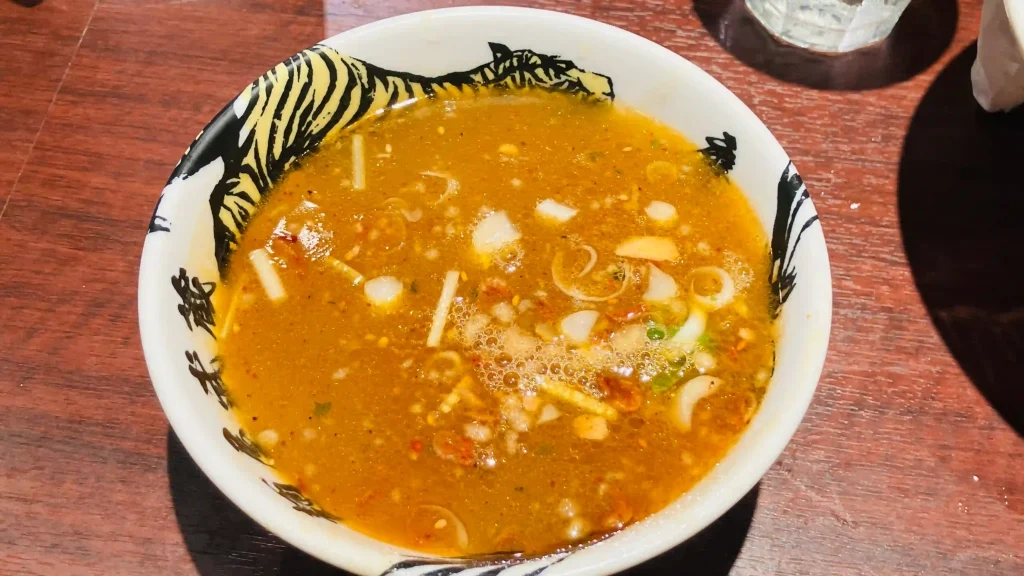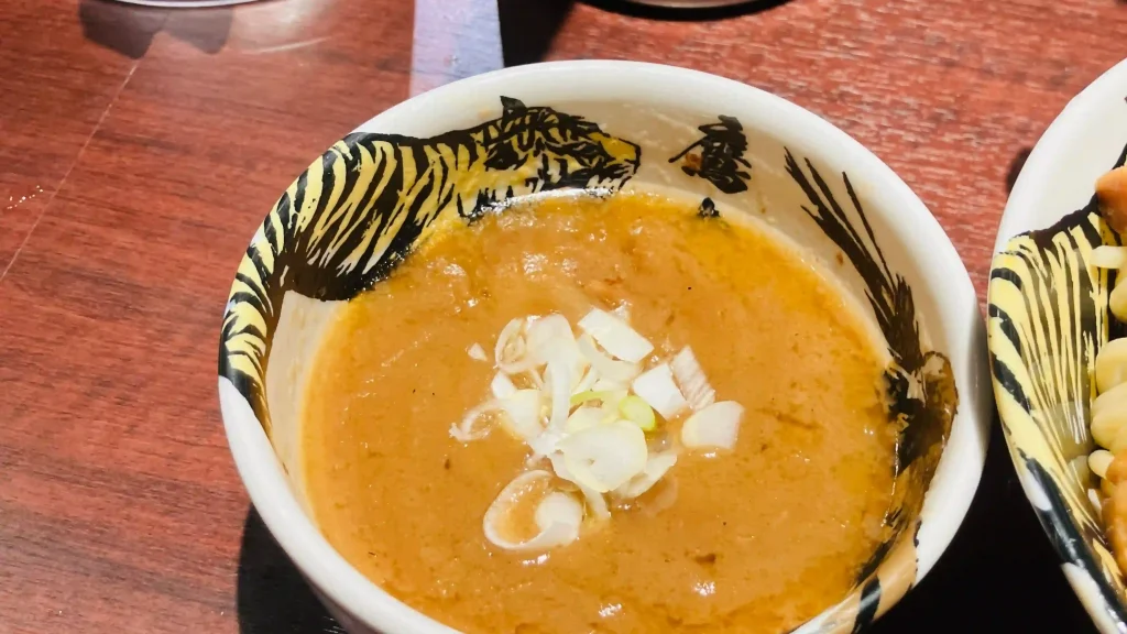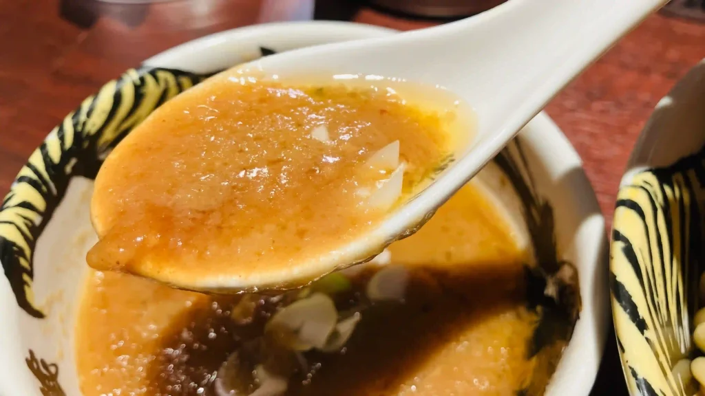 つけ麺スープは、ど濃厚ということでジェルのようにプリプリしています。