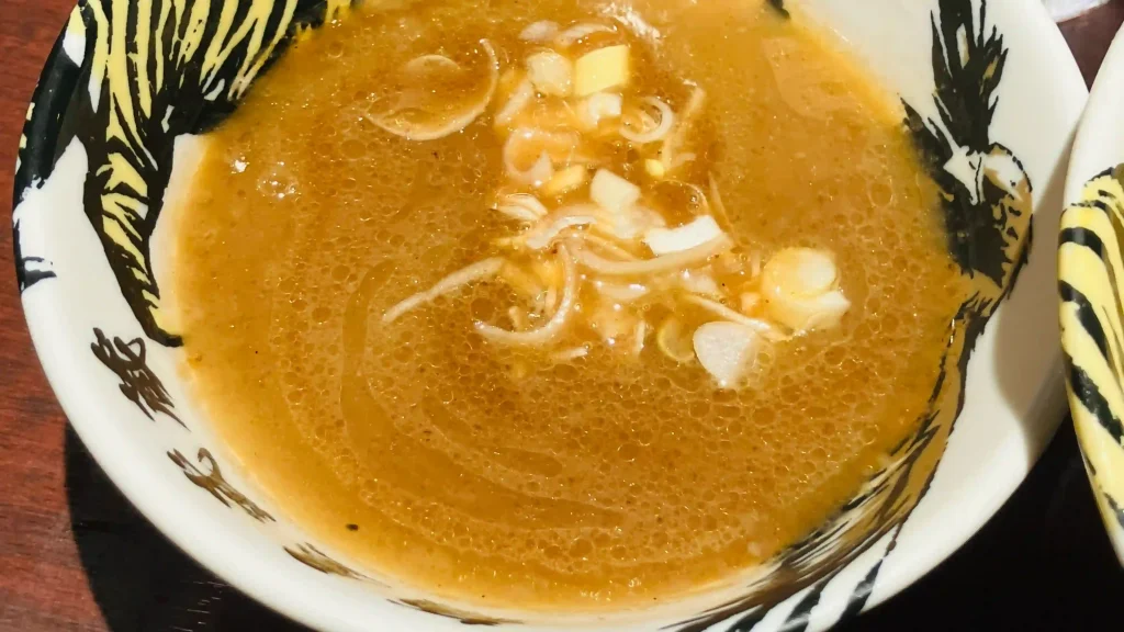 こちらが、濃厚スープです。ど濃厚スープと比べると、濃厚さが全然違いますね。